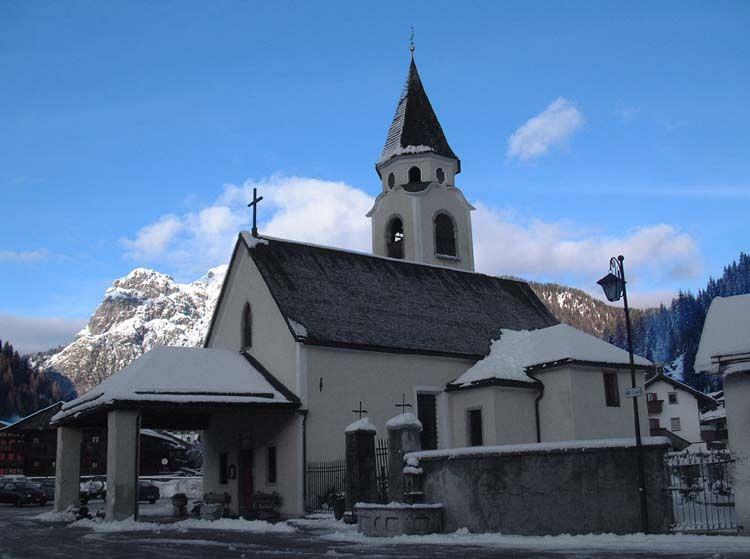 La chiesetta di S. Osvaldo, eretta nel 1732, venne ricostruita in forma più ampia nel 1773. Alla facciata è addossato un portico aperto ai lati. Restaurata a più riprese nel 1819, nel 1906 e nel 1954, la piccola chiesa fu oggetto di lavori di adattamento per aumentarne lo spazio interno nel 1970-71, quando furono pure realizzati il nuovo altar maggiore e l'ambone.